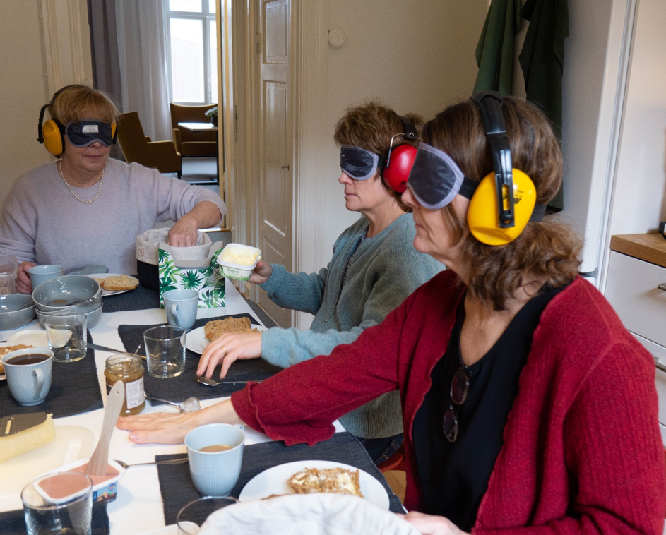 Hur var det att varken se eller höra när folk kom och gick? Var det kul att fika? Hur smakade det? Likadant som vanligt eller mer eller mindre? Vad pratade ni om?  Gick det att hänga med i samtalet? Gick det att påverka situationen?